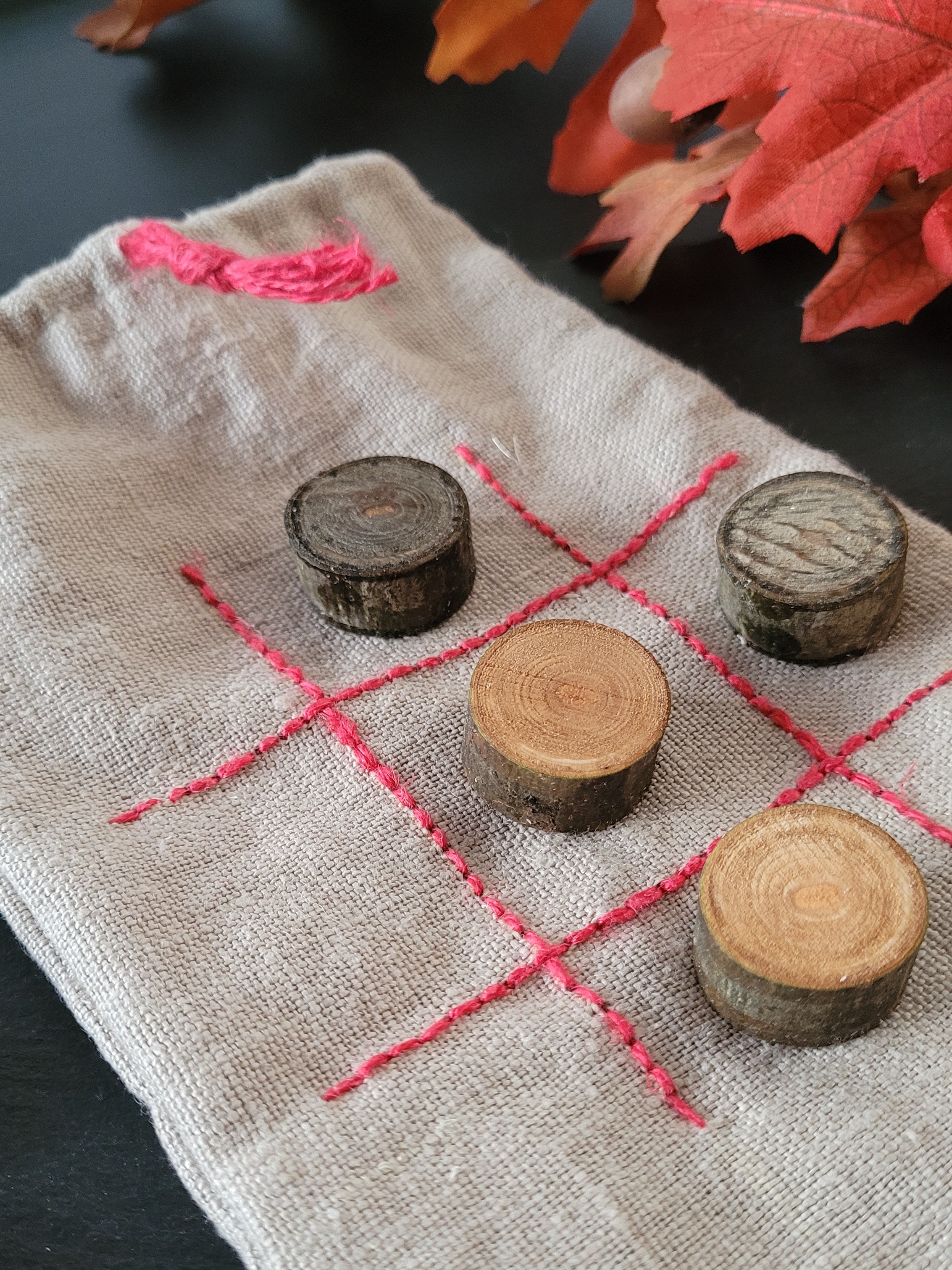 Der Klassiker in mittelalterlicher Variante. 3 gewinnt oder auch TicTacToe genannt, gibt's jetzt im praktischen Leinensäckchen. Ausgewählter Leinenstoff wird zum Säckchen und mit rotem Leinengarn ist das Spielfeld bestickt. Die Spielsteine in verschiedenen Farben sind einfach auseinander zu halten und können nach dem Spiel leicht wieder im Säckchen verstaut werden. So macht 3 gewinnt auch auf dem Mittelalter Lager Spaß.