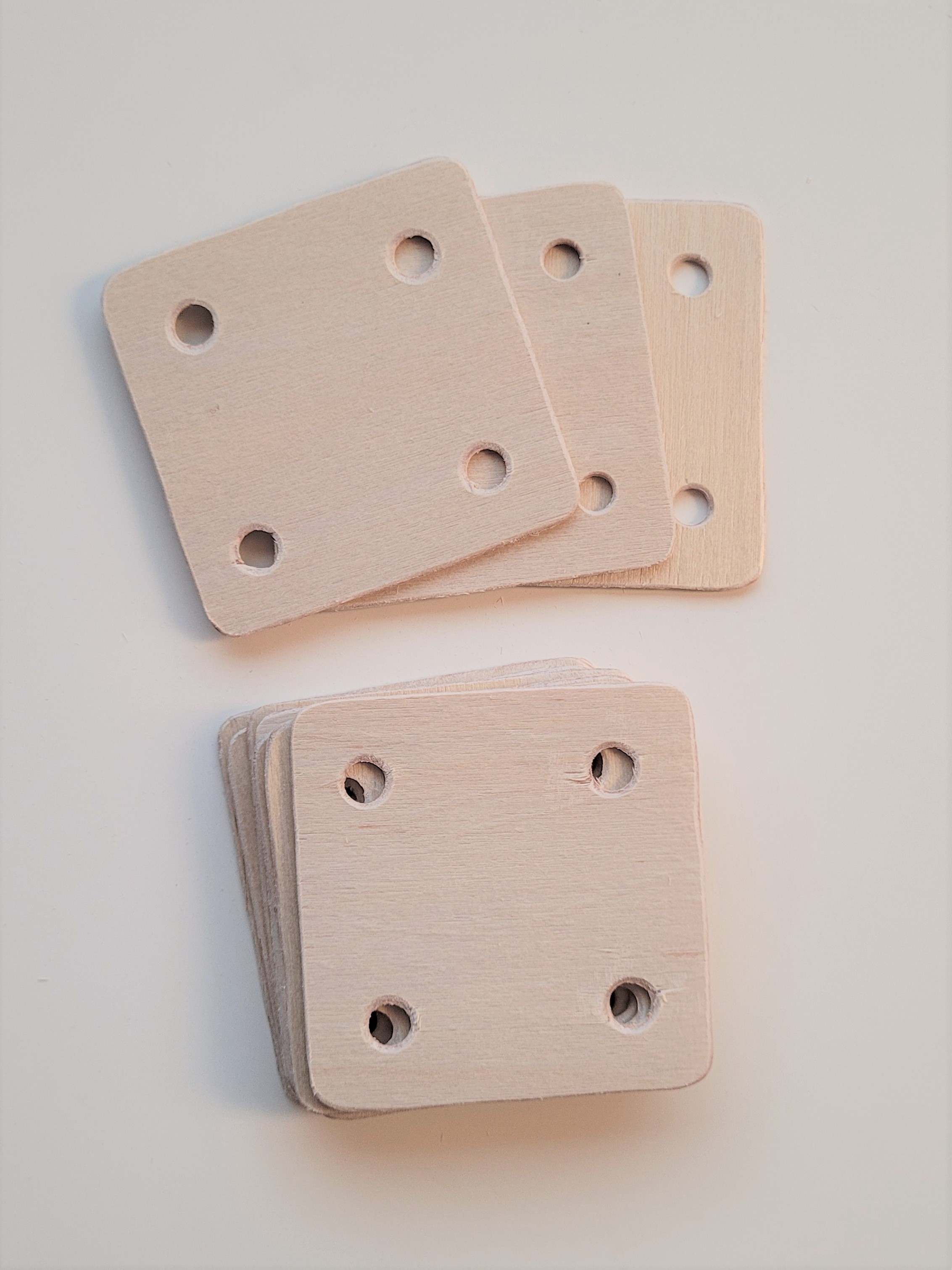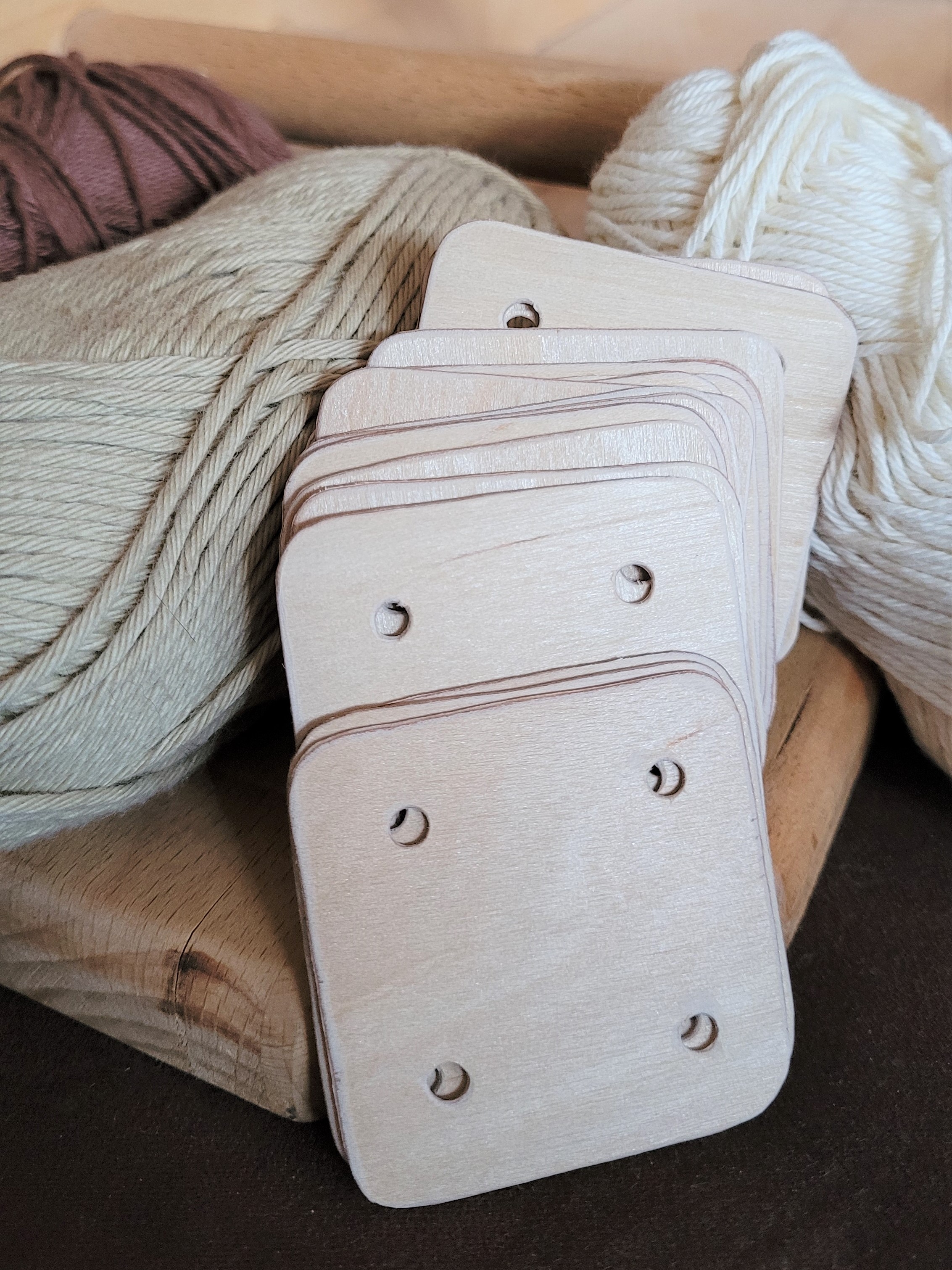 Diese Webbrettchen sind unverzichtbar beim Brettchenweben. Sie sind ca 5x5 cm groß und aus Birkenholz gefertigt. Jedes Brettchen ist Handarbeit hergestellt. Sie sind naturbelassen. Alle Löcher sind fein geschliffen damit dein Garn nicht so einen starken Abrieb hat.Größe: 5x5 cm