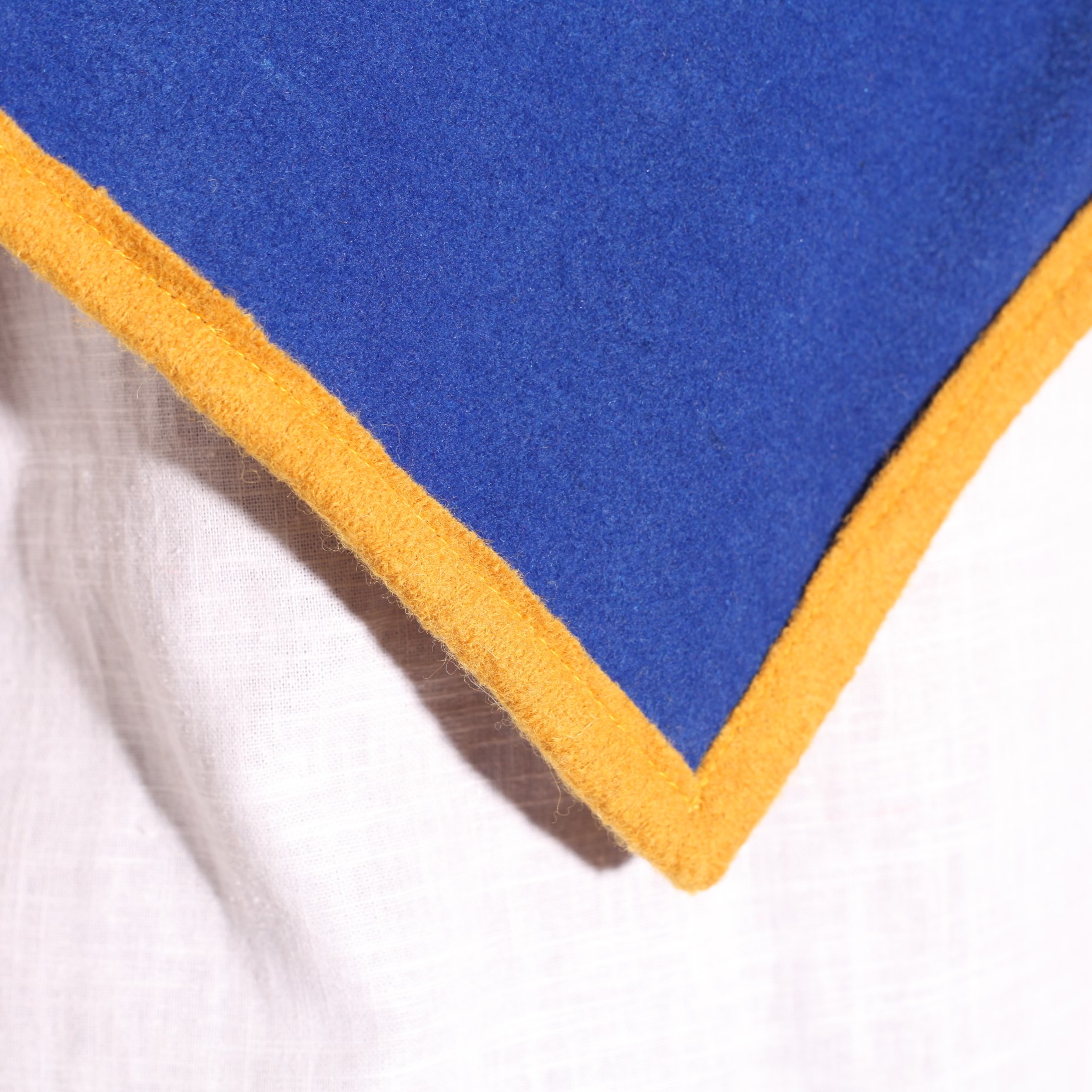 Reine Wollgugel aus Schurwolle mit einem Innenfutter aus 100% Leinen. Der untere Rand ist mit gelber Wolle eingefasst und hebt sich durch den Kontrast besonders hervor.