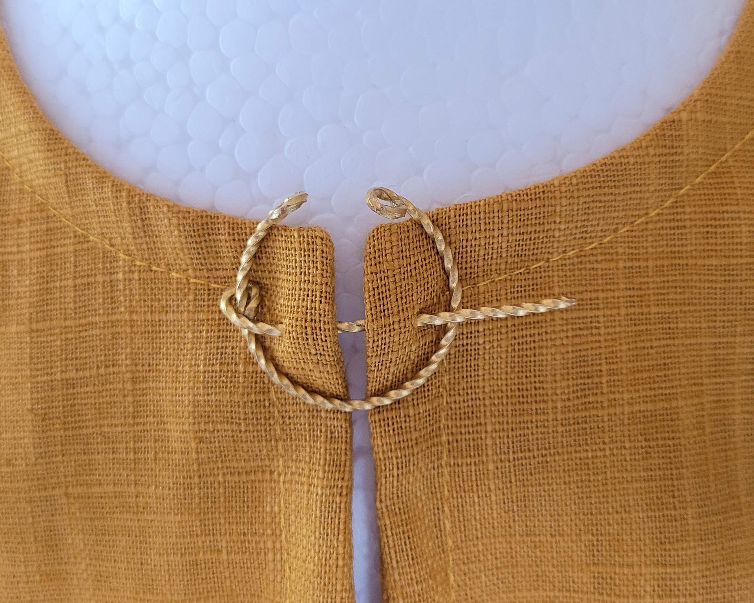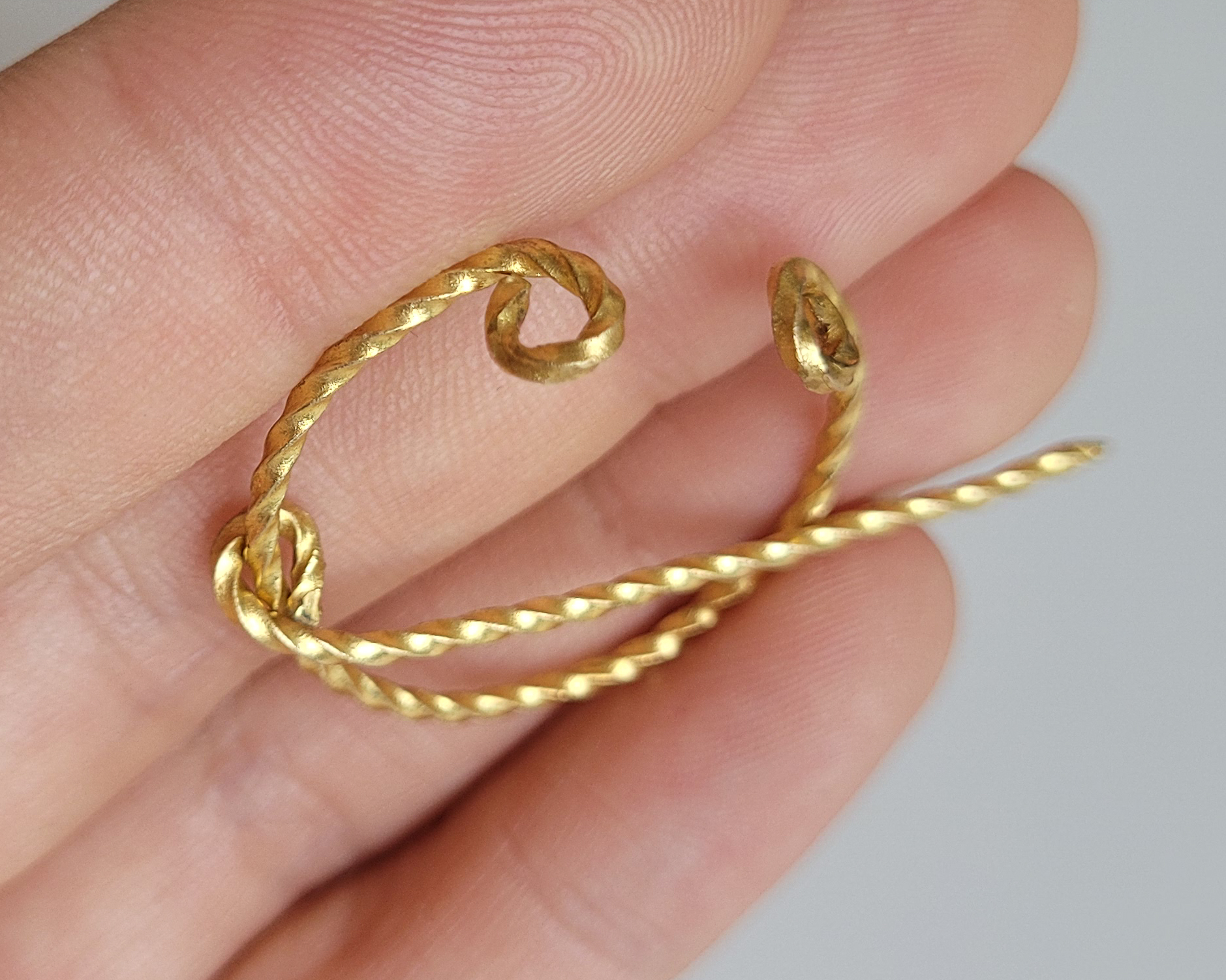 Hufeisenfibeln sind zum Verschließen von Mittelalter Kleidung sehr gut geeignet. Diese Fibel ist aus gedrehtem Bronzedraht.