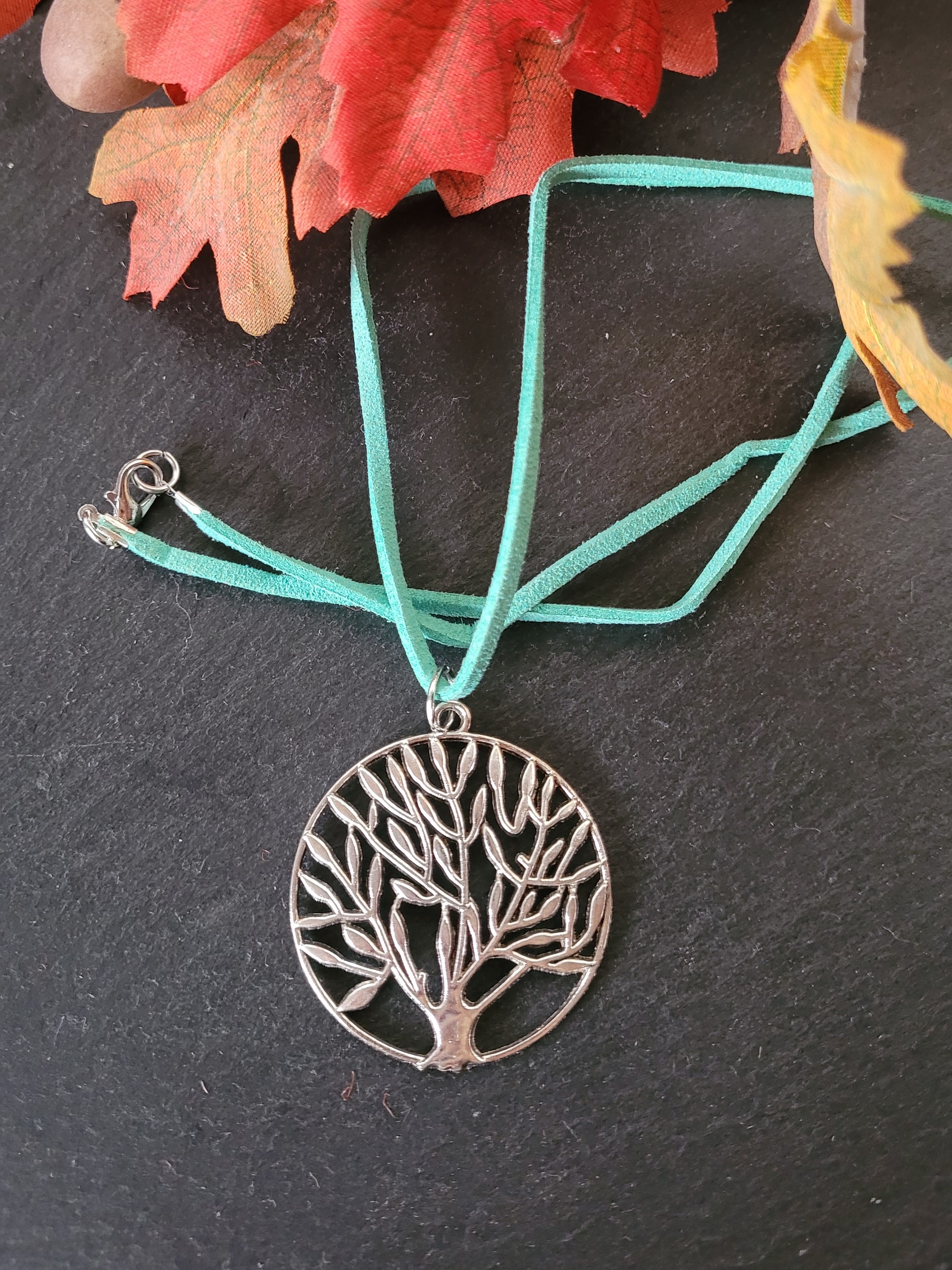 Wunderschöne Kette mit einem Baum im Medaillon. Verschlossen wird die Kette mit einem Karabiner.