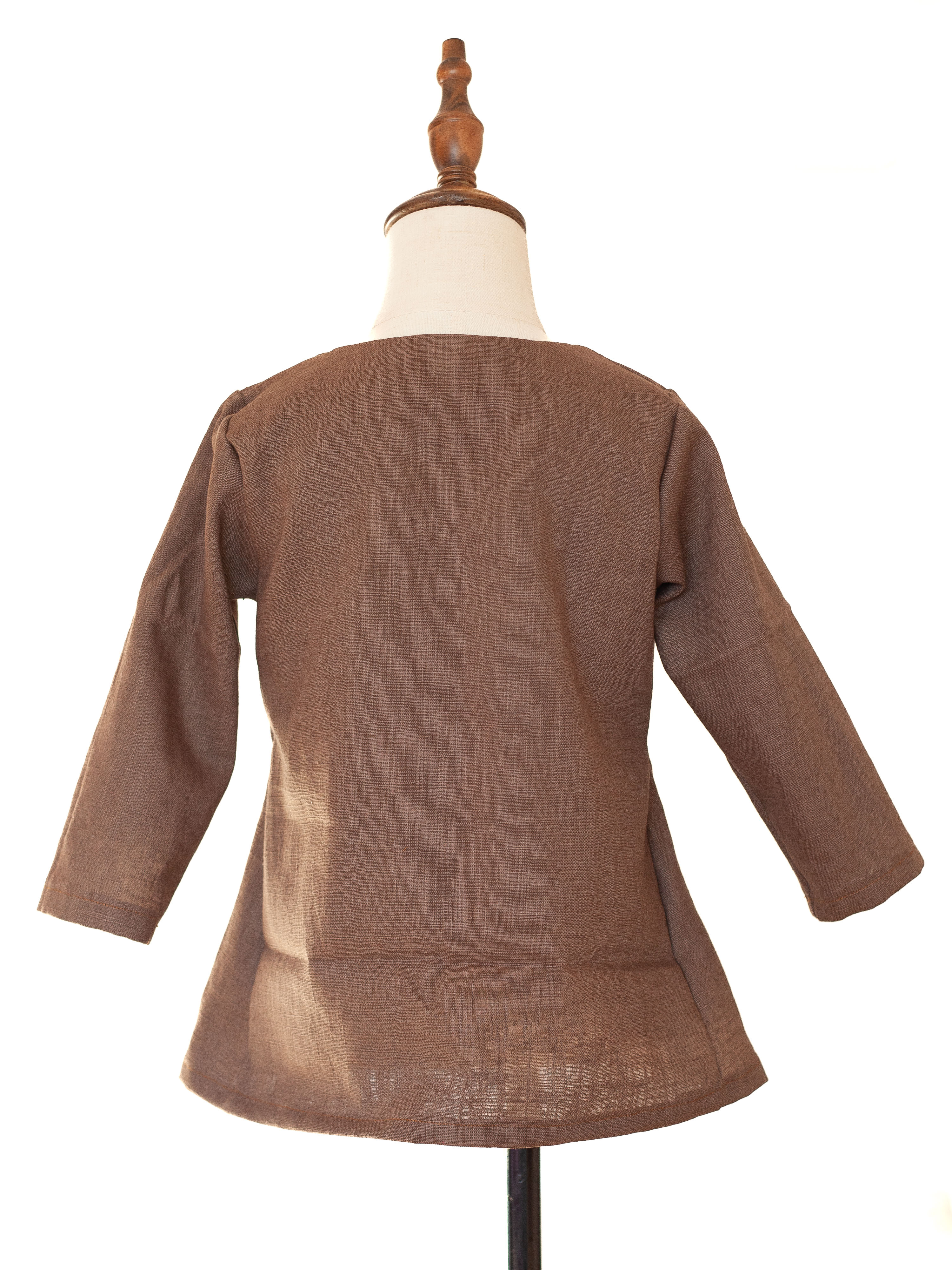 Ärmere Kinder wie die eines Bauern trugen meist Leinengewandungen aus ungefärbten oder neutralen Stoffenwie diese braune Tunika.