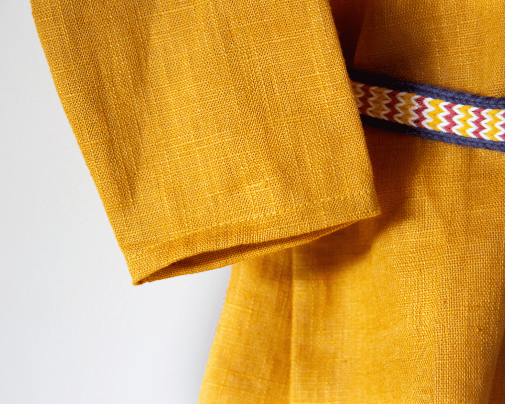 Leichtes Leinenkleidchen für Mädchen. Das Kleidchen ist aus einem reinem Leinenstoff genäht. An den Seiten hat es eingesetzte Keile, die für mehr Bewegungsfreiheit beim laufen sorgen. Das Leinenkleid ist mit der Maschine genäht und hat einen verstärkten Halsausschnitt.