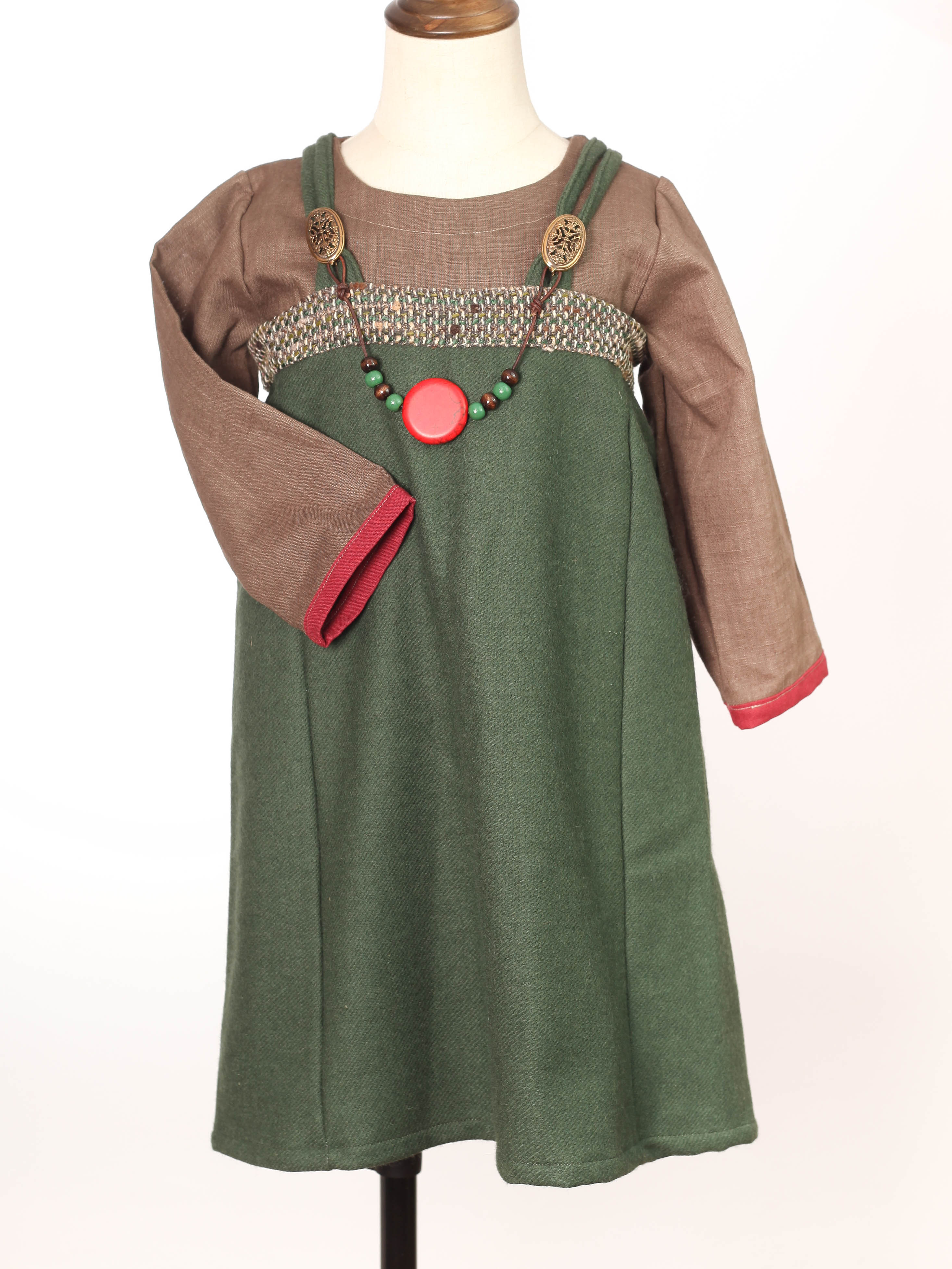 Das Mittelalterkleid für Mädchen kann für unterschiedliche Darstellungen zum Beispiel für Wikinger genutzt werden. Es hat eine Gesamtlänge von 62 cm und eine Ärmellänge von 34 cm. Mit einem Bauchumfang von 72 cm passt es Kindern bis Größe 104.